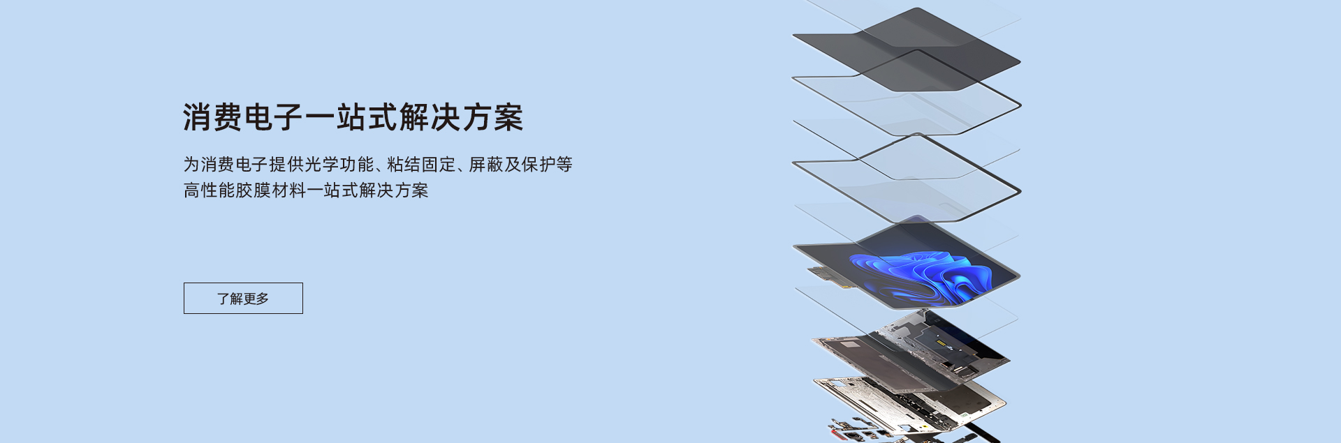 致力于為汽車制造、消費電子、智慧顯示端口等行業客戶提供包括新能源材料、電子功能材料、光電顯示材料、有機硅材料在內的產品研發(fā)、生產、銷售于一體化服務,建立了專業的市場營銷與技術服務團隊,為客戶提供高性能膠膜材料一站式解決方案。